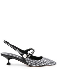rhinestone-embellished pointed-toe pumps Highlights - Black - Rhinestone embellishment - Silver-tone chain-link detailing - Pearl detail - Pointed toe - Elasticated slingback strap - Leather lining - Branded footbed - Low sculpted heel Composition Outer: Calf Leather 100% Lining: Calf Leather 100% Sole: Calf Leather 100%, Rubber 100% SIZE & FIT Measurement HEEL 2.16 in(5.5 cm)
