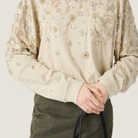 Refined floral embroidery embellishes this jersey tee characterized by an oversized fit and contemporary charm deriving from the garment-dyed treatment. - Product code: MJL061_1588_F0354_S_OOO - Oversized fit - Long sleeves with ribbed knit cuffs - Crew-neck - Twin-needle hem - Embroidered logo - Imported - The model is 180 cm tall and wears a size 38 Height 64cm Materials Main material: 100% Cotton
