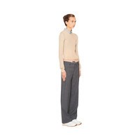 Classic styles are reinterpreted through proportions and precious details in the new Miu Miu collection. Iconic fabrics from the classic sartorial world meet innovation in this collection that is a reaction and a reflection of reality. - Straight fit - Unlined garment - Zipper fly with hook - Embroidered logo - Angled slash front pockets - Back welt pockets Height 107 cm The model is 180 cm tall and wears a size 38 Product code MP1578_10DI_F0480
