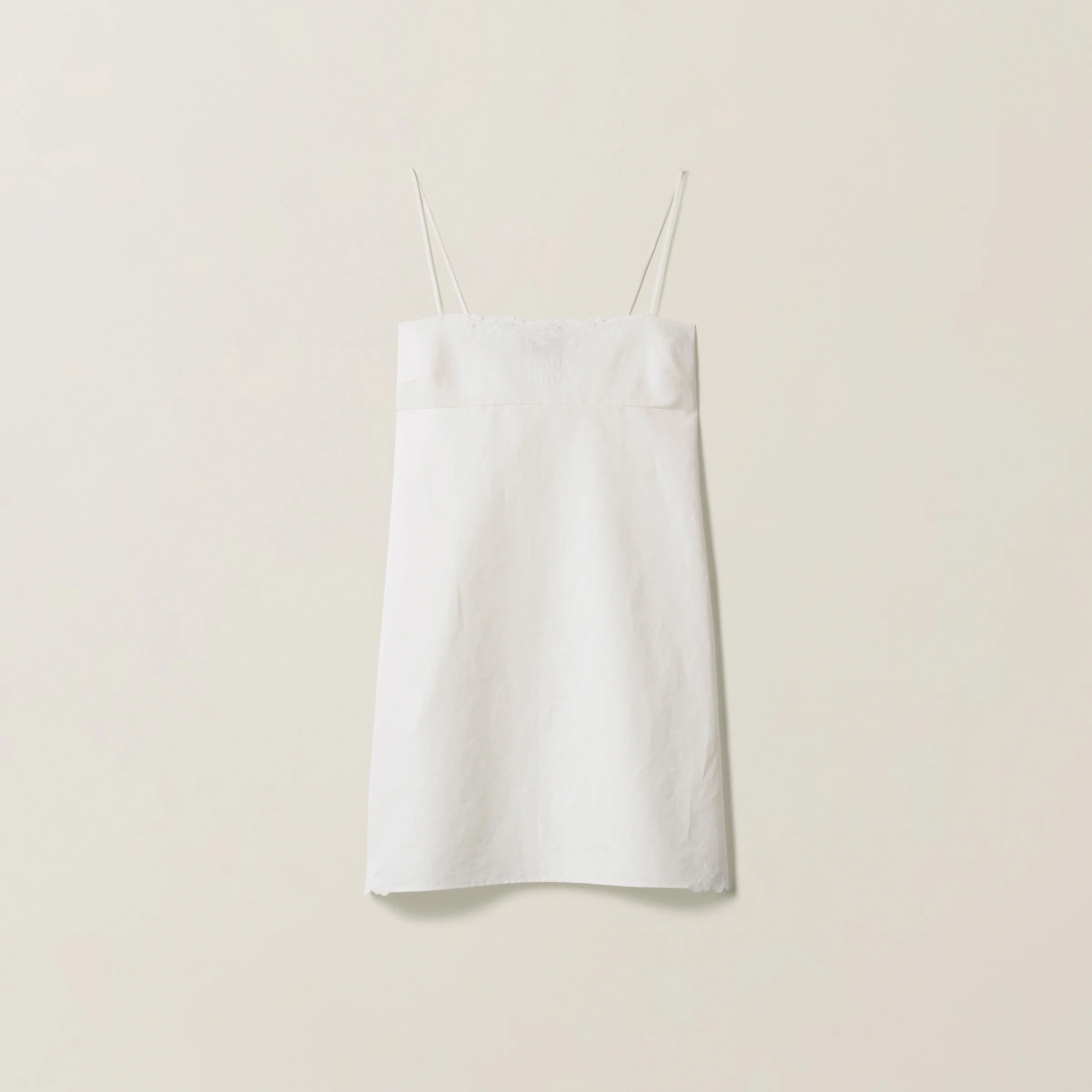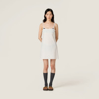 Inspired by summer imagery of the 1960s, this slubbed canvas dress expresses a bold personality emphasized by its lines and precious embroidery that enhance its authentic femininity. - Product code: MF5875_17LV_F0304_S_OOO - Straight fit - Unlined garment - Straight neckline - Side zipper closure with hook - Embroidered logo - Imported - The model is 178 cm tall and wears a size 38 Height 80cm Materials Linen/natural