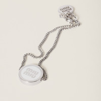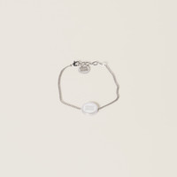 The sleek design of this bracelet becomes iconic thanks to the logo-engraved medal detail that expresses the elegant essence of Miu Miu style. - Product code: 5IB632_2F6T_F097W - Lobster claw clasp - With logo detail - Imported Width 18.7cm Materials Main material: Brass