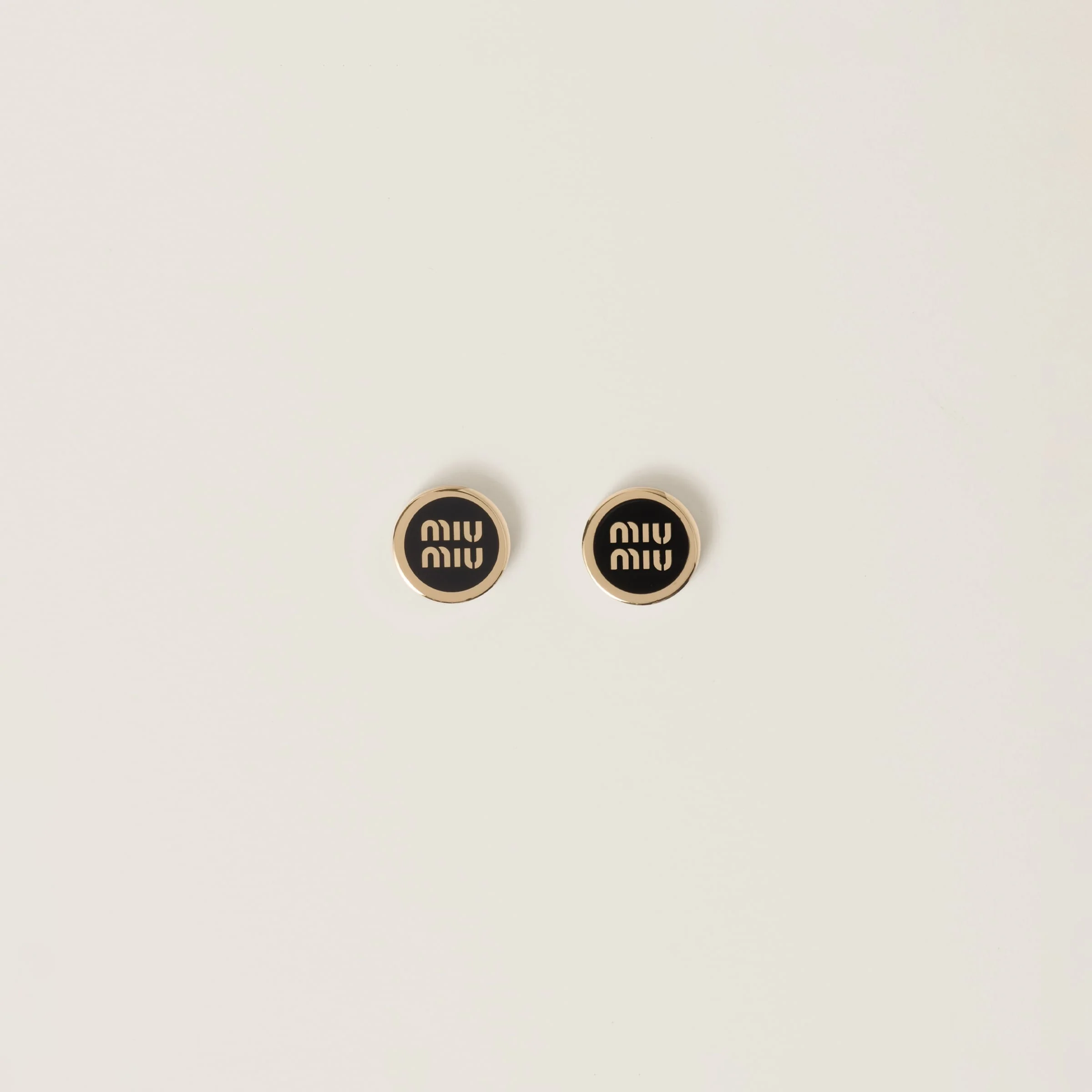 These romantic, minimalist earrings are decorated with the Miu Miu lettering logo at the center. - Product code: 5JO912_2F6T_F0002 - Metal and colored enamel - For pierced ears - Visible logo - Imported Width 1.5cm Length 1.45cm Materials Main material: Enamel Brass