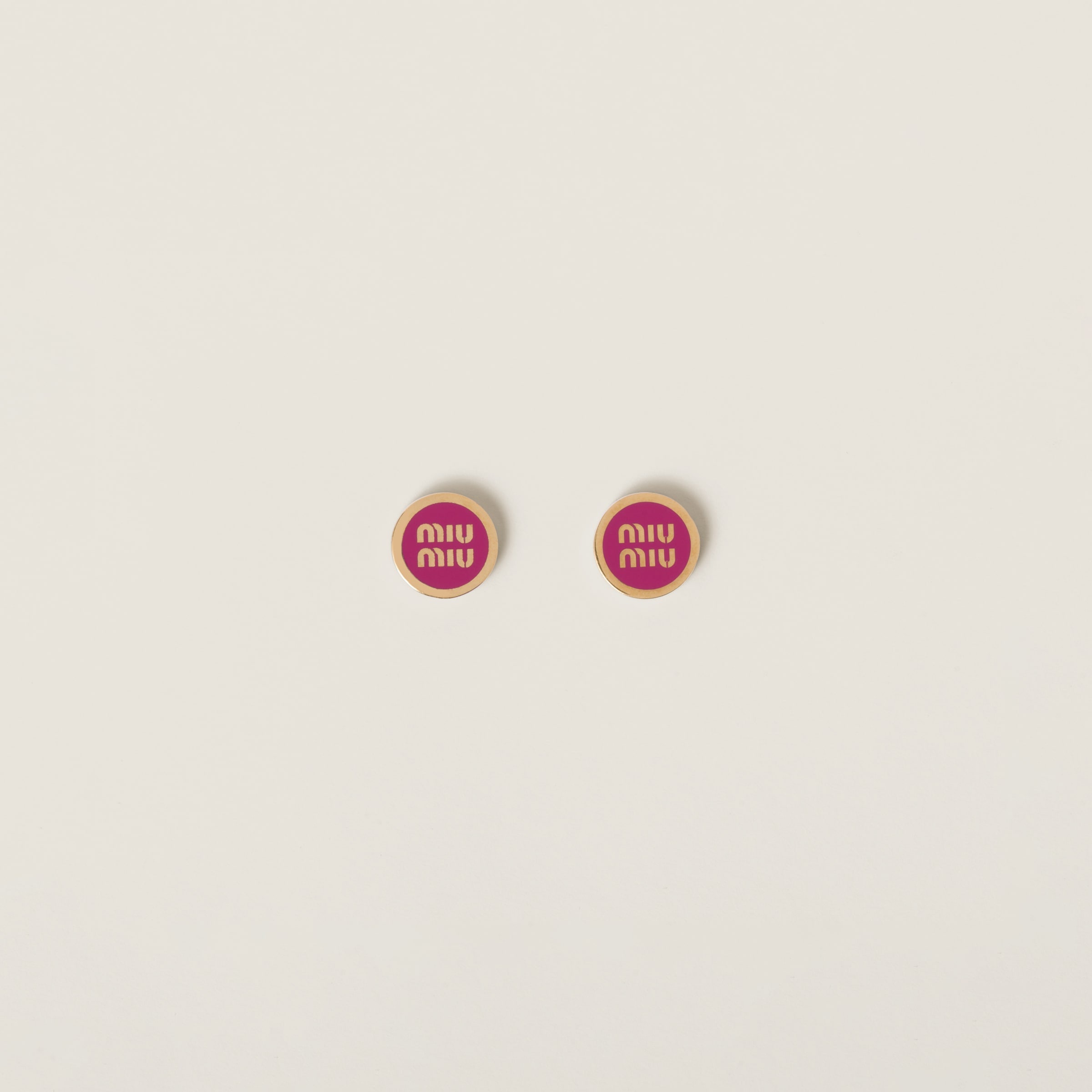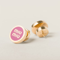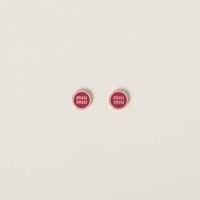 These romantic, minimalist earrings are decorated with the Miu Miu lettering logo at the center. - Product code: 5JO912_2F6T_F0029 - Metal and colored enamel - For pierced ears - Visible logo - Width: 1,5cm - Length: 1,45cm - Imported