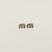 These romantic, minimalist earrings are decorated with the M of Miu Miu in enameled metal. - Product code: 5JO911_2F6T_F0002 - Metal and colored enamel - For pierced ears - Logo lasered on the back - Imported Height 0.74cm Width 1cm Length 1.3cm Materials Main material: Brass