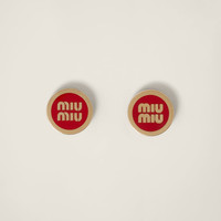 These romantic, minimalist earrings are decorated with the Miu Miu lettering logo at the center. - Product code: 5JO912_2F6T_F0011 - Metal and colored enamel - For pierced ears - Visible logo - Imported Width 1.5cm Length 1.45cm Materials Main material: Enamel Brass