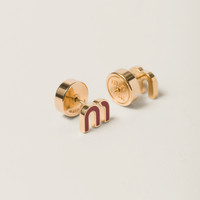 These romantic, minimalist earrings are decorated with the M of Miu Miu in enameled metal. - Product code: 5JO911_2F6T_F0011 - Metal and colored enamel - For pierced ears - Logo lasered on the back - Height: 0,74cm - Width: 1cm - Length: 1,3cm - Imported
