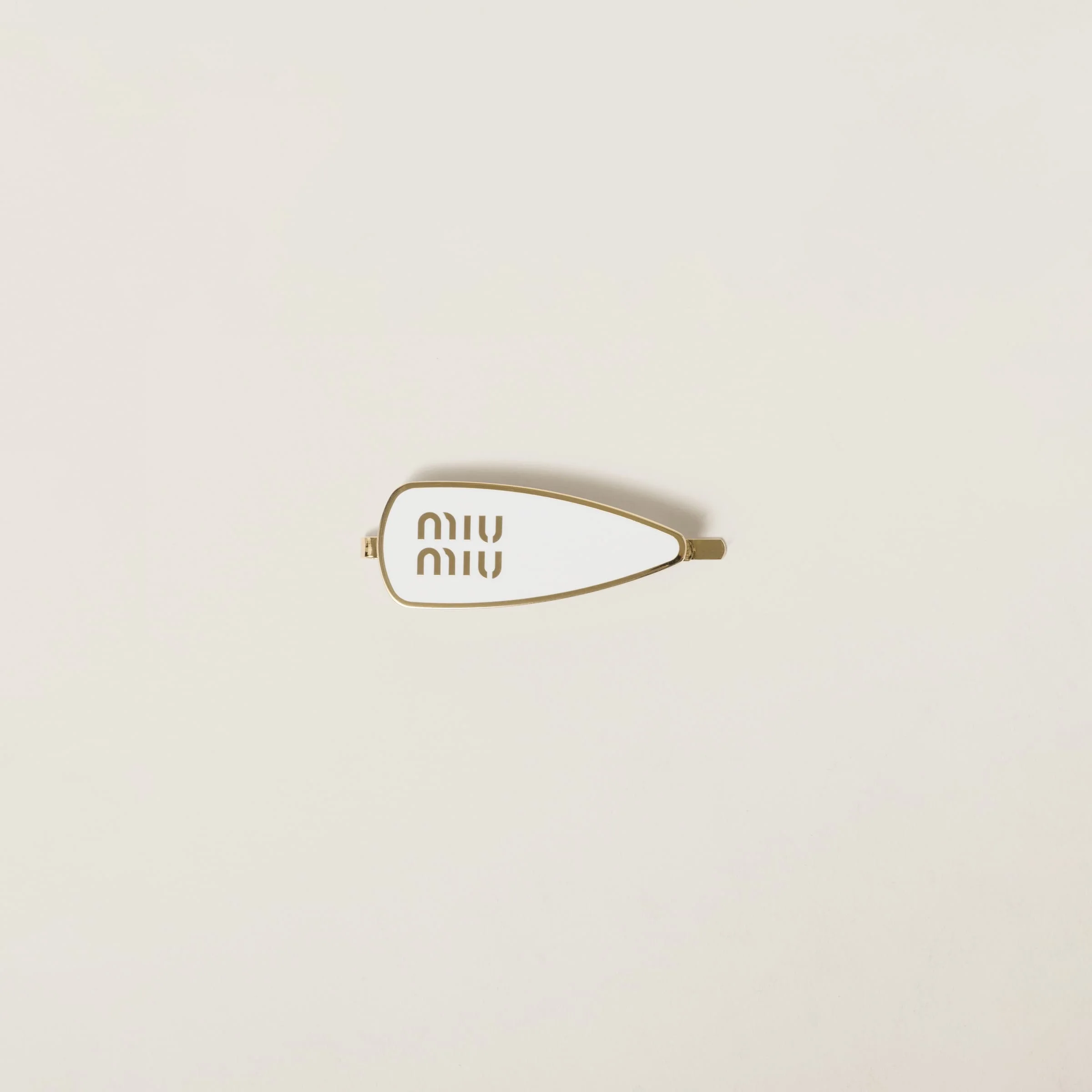 The visible Miu Miu logo gives this clip iconic and immediately recognizable style, becoming the emblem of a detail that makes all the difference. - Product code: 5IF147_2F6T_F0009 - Metal and colored enamel - Visible logo - Imported Height 2.2cm Width 6.2cm Materials Other materials