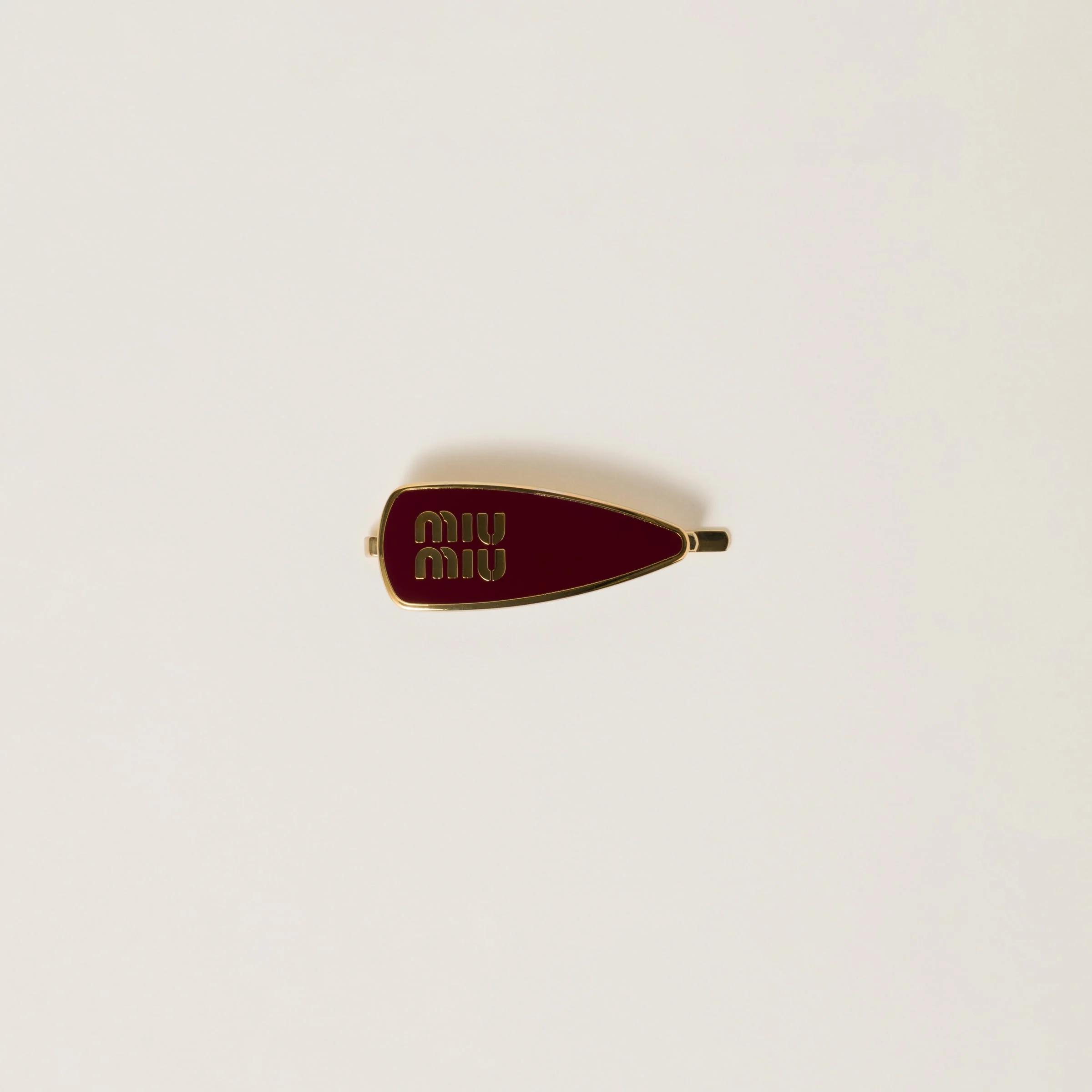 The visible Miu Miu logo gives this clip iconic and immediately recognizable style, becoming the emblem of a detail that makes all the difference. - Product code: 5IF147_2F6T_F0399 - Metal and colored enamel - Visible logo - Imported Height 2.2cm Width 6.2cm Materials Main material: Brass