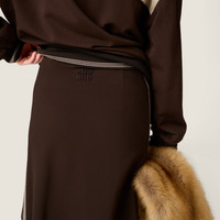 This knit skirt stands out for its fabric stitch and a contemporary attitude that reinterprets simplicity with clean lines redefined by bold details like the side zipper and embroidered lettering logo. - Product code: MG2566_18FQ_F0324_S_OOO - Flared fit - Unlined garment - Side zipper closure - Lettering logo - Imported - The model is 177 cm tall and wears a size 38 Height 55cm Materials Main material: 4% Elastane 11% Polyamide 85% Viscose