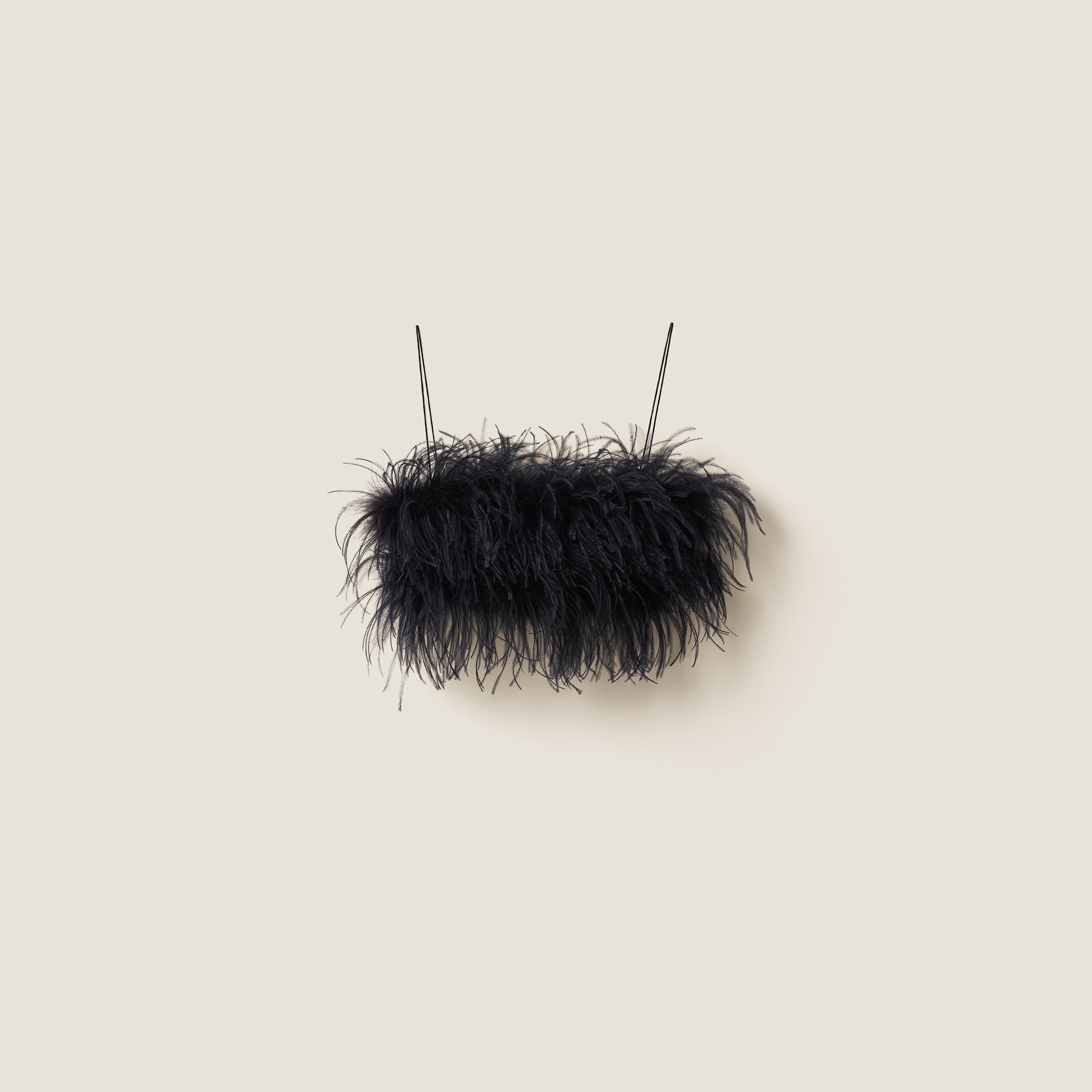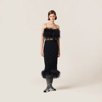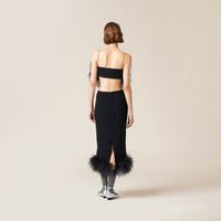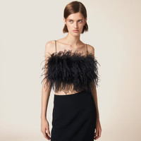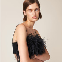 The classic style of this grain de poudre top is played down by the feather detail that covers the front of the garment with a captivating touch. - Product code: MT1957_1378_F0002_S_OOO - Straight fit - Lined - Straight neckline with spaghetti straps - Side zipper closure - Feather embellishment - Imported - The model is 178 cm tall and wears a size 38