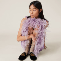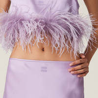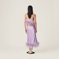 The refined touch of satin meets the sophisticated detail of feather trim on this skirt. The embroidered logo decorates this stylish garment. - Product code: MG2130_137R_F0014_S_OOO - Full silhouette - Unlined garment - Side zipper closure with hook - Embroidered logo - Feather trim on the hem - Height: 72cm - Imported