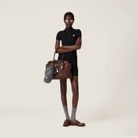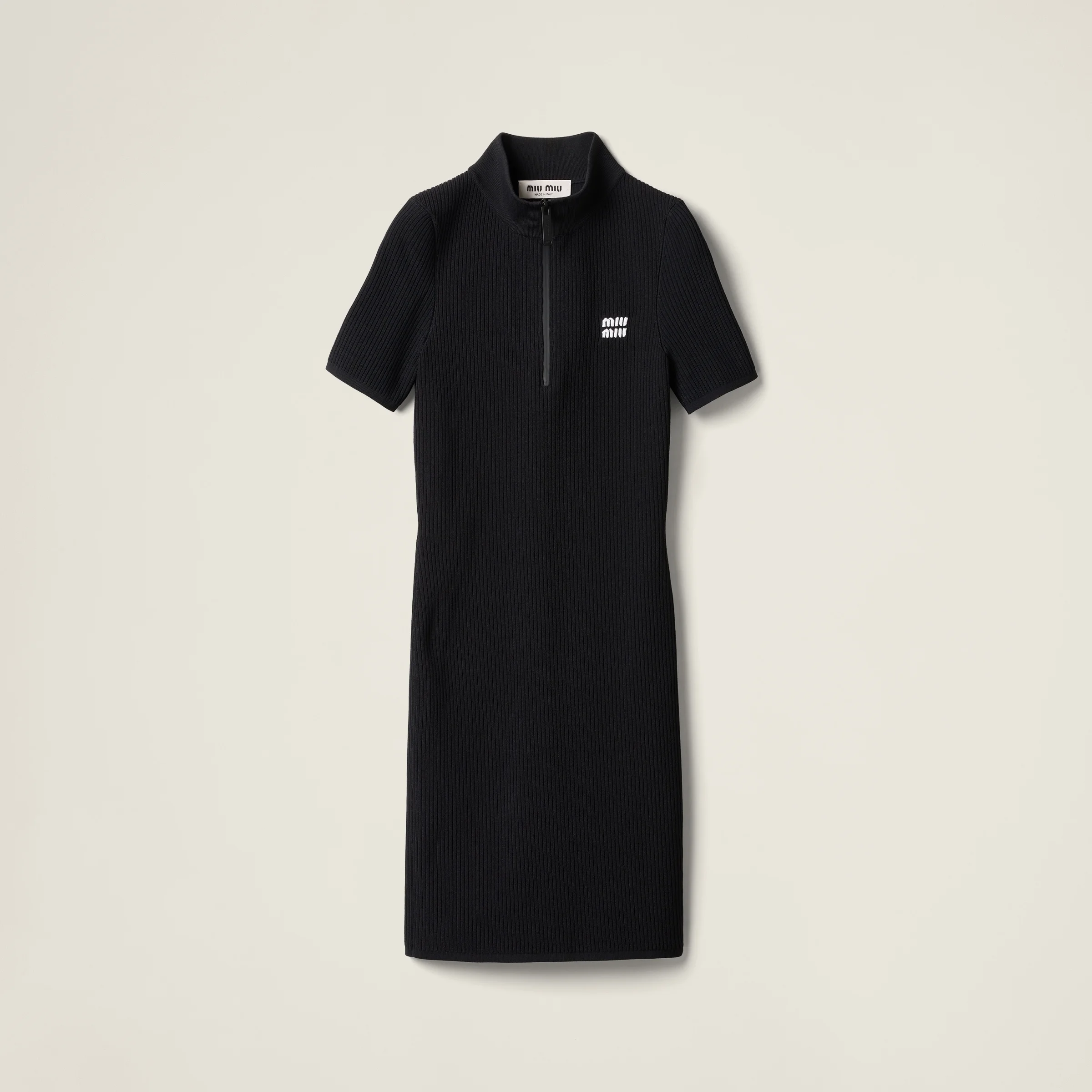 Ribbed knit enhances the minimalist style of this viscose mini-dress. The zipper closure and intarsia logo accentuate its versatile, sporty essence, perfect for endless combinations. - Product code: MMA894_15BR_F0002_S_OOO - Ribbed knit - Sheath silhouette - Short sleeves - Ribbed knit turtleneck - Semi-raglan shoulder--Front zipper closure - Ribbed knit sleeve trim and hem - Intarsia logo - Imported - The model is 179 cm tall and wears a size 38 Height 82cm Materials Main material: 100% Viscose