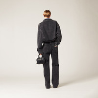 References to the world of streetwear define the silhouette of these jeans with embroidered logo lettering. Between a rebellious spirit and feminine seductiveness, Miu Miu plays with the design of iconic wardrobe styles creating a new balance of proportions. - Product code: GWP450_115V_F0002_S_231 - Washed - Regular fit - Low-rise waist - Button closure - Color-matched top-stitching - Rounded front pockets - Back patch pockets - Ironed crease - Embroidered logo - Imported - The model is 175 cm tall and wears a size 38 - Height: 114cm