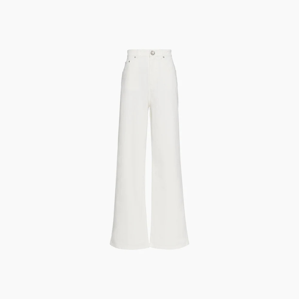 These high-waisted relaxed fit jeans embody the classic soul of denim. The design combines a vintage effect and minimalist details like matching stitching and angled slash pockets. - Washed denim - Relaxed fit - High-rise waist - Zipper fly with button - Matching stitching - Front slash pockets - Back patch pocket - Total length 120 cm, size 25 Height 120 cm The model is 179 cm tall and wears a size 38 Product code GWP394_4YE_F0009