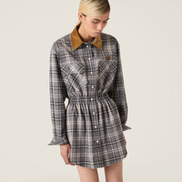Inspired by men's shirtwear, this flannel mini-dress combines a feminine silhouette with fitted waist and classic details like the velvet collar and embroidered leather logo for iconic, vintage allure. - Product code: MF6159_1807_F0480_S_OOO - Mini fit - Shirt collar - Front button closure - Sleeves with shirt cuffs - Inseam pockets and patch pockets - Embroidered leather logo - Imported Materials Main material: 100% Cotton
