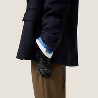 The periwinkle blue poplin collar highlights the contemporary layering of this gabardine blouson jacket, defining a garment with a relaxed fit and bold versatility. - Product code: ML1052_16E8_F0308_S_OOO - Lined garment - Long sleeves - Shirt-style collar - Cuff with buttons - Zipper closure - Vertical pockets - Drawstring hem - Embroidered logo - Imported - The model is 178 cm tall and wears a size 38 Height 53cm Materials Main material: 100% Virgin Wool