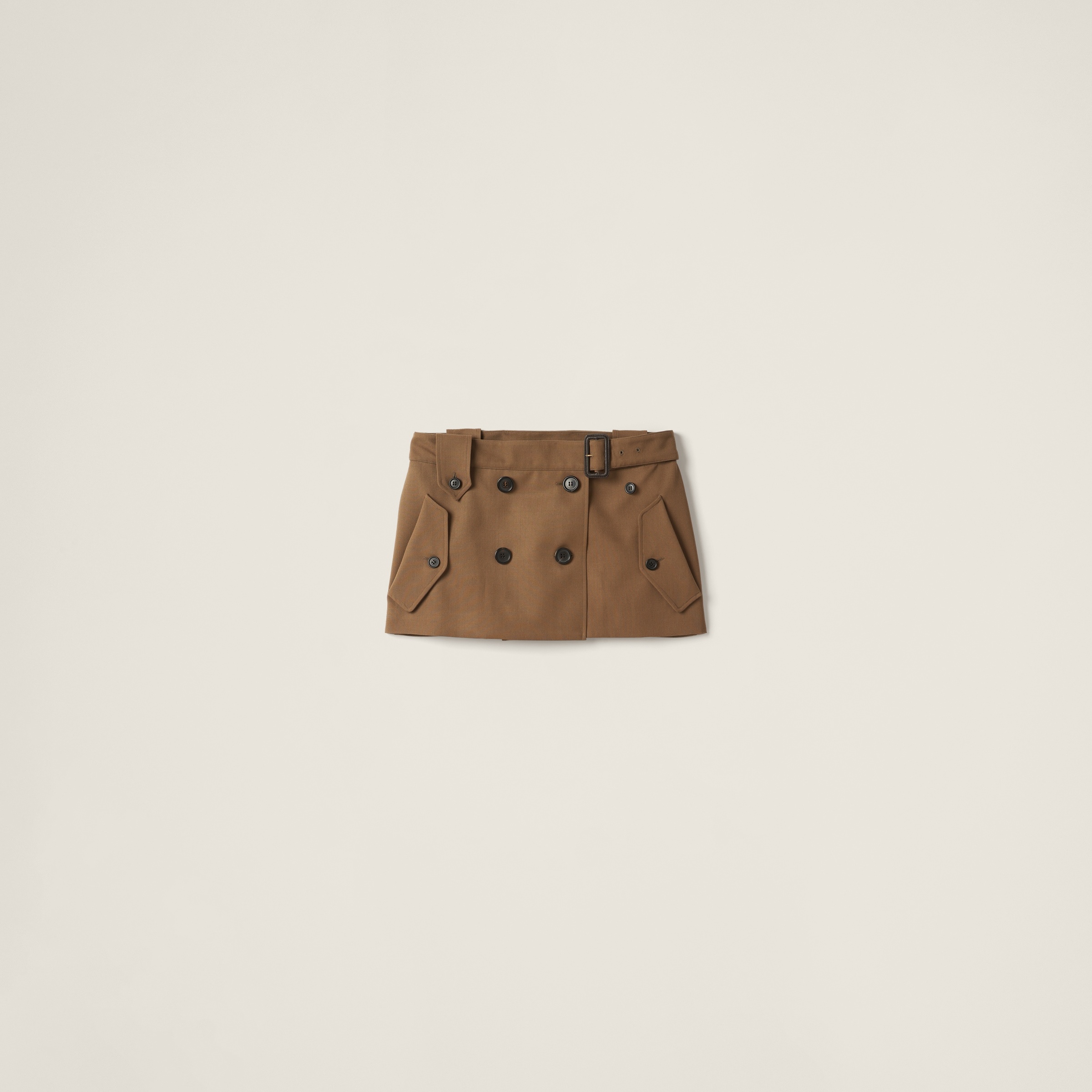 A refined style inspired by the utility world characterizes this gabardine miniskirt. The belt with buckle and buttons accent the sleek lines of the garment while the embroidered logo adds a signature touch to this stylish version. - Product code: MG2124_108N_F0594_S_OOO - Miniskirt - Lined garment - Front button closure - Embroidered logo - Flap Pockets - Belt Detail - Imported - The model is 178 cm tall and wears a size 38 Height 30cm