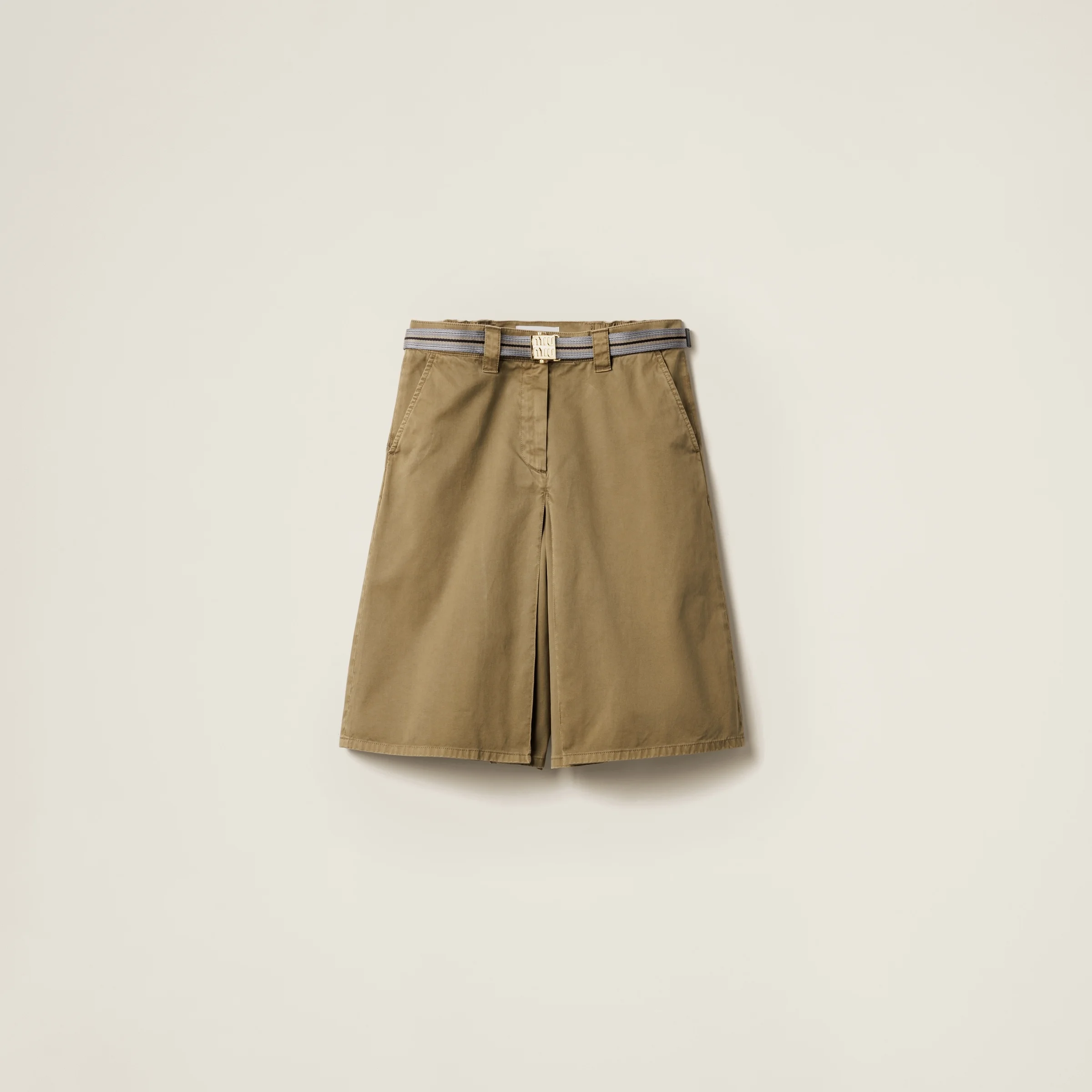 The particular garment-dyed coloring of the cotton satin and the detail of the logo-print belt give this skirt elegant, vintage charm. - Product code: MG2381_16MS_F0393_S_OOO - Inverted pleats - Unlined garment - Side zipper closure - Angled pockets - Logo-print woven fabric belt - Lettering logo - Imported - The model is 176 cm tall and wears a size 38 Height 58cm Materials Main material: 100% Cotton