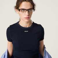 A fine pointelle lace motif inspired by classic lingerie adds a touch of exclusivity and elegance to this garment-dyed cotton top that combines the intense character of its color and refined lace details. - Product code: MT2206_19DF_F0008_S_OOO - Cropped, slim fit - Unlined garment - Short sleeves - Ribbed knit crew neck - Lace-trimmed hem and sleeves - Knit logo label - Imported Height 45cm Materials Main material: 100% Cotton