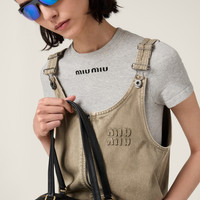 The garment-dyed treatment of the gabardine fabric blends with the soft lines of this padded bomber jacket, enhancing the vintage look and casual attitude of Miu Miu. - Product code: ML1133_135Q_F0244_S_OOO - Lined garment - Knit collar - Padded with wadding - Long sleeves with ribbed knit cuffs - Zipper closure - Flap pockets - Embroidered logo - Imported - The model is 180 cm tall and wears a size 38 Materials Main material: 100% Cotton