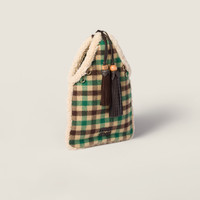The classic gingham pattern enhances the retro inspirations of this bag, enriched with soft shearling finishes, leather tassels with a playful touch, and small rings on the front designed to create original combinations with accessories and tricks. - Product code: 5BA295_2ID6_F0HDZ_V_OOO - With removable tassels - Shearling interior with patch pocket - Gold-tone hardware - Leather lettering logo on the front - Imported Height 37cm Width 24cm Materials Main material: Polyamide Virgin Wool