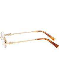 Oval rimless metal-frame optical glasses. · Adjustable nose pads · Logo hardware at temples · Tortoiseshell acetate temple tips · Hardware at tips · Leather pouch included · Size: 51.20 140 Supplier color: Gold/Clear Metal. Made in Italy 252209F004009