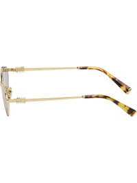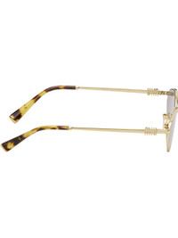 Oval metal-frame sunglasses. · 100% UVA/UVB protection · Purple tinted lenses · Logo etched at lens · Adjustable rubber nose pads · Logo hardware at temples · Tortoiseshell acetate temple tips · Includes case · Size: 56.17 140 Supplier color: Gold/Mauve lenses Metal. Made in Italy 261209F005037