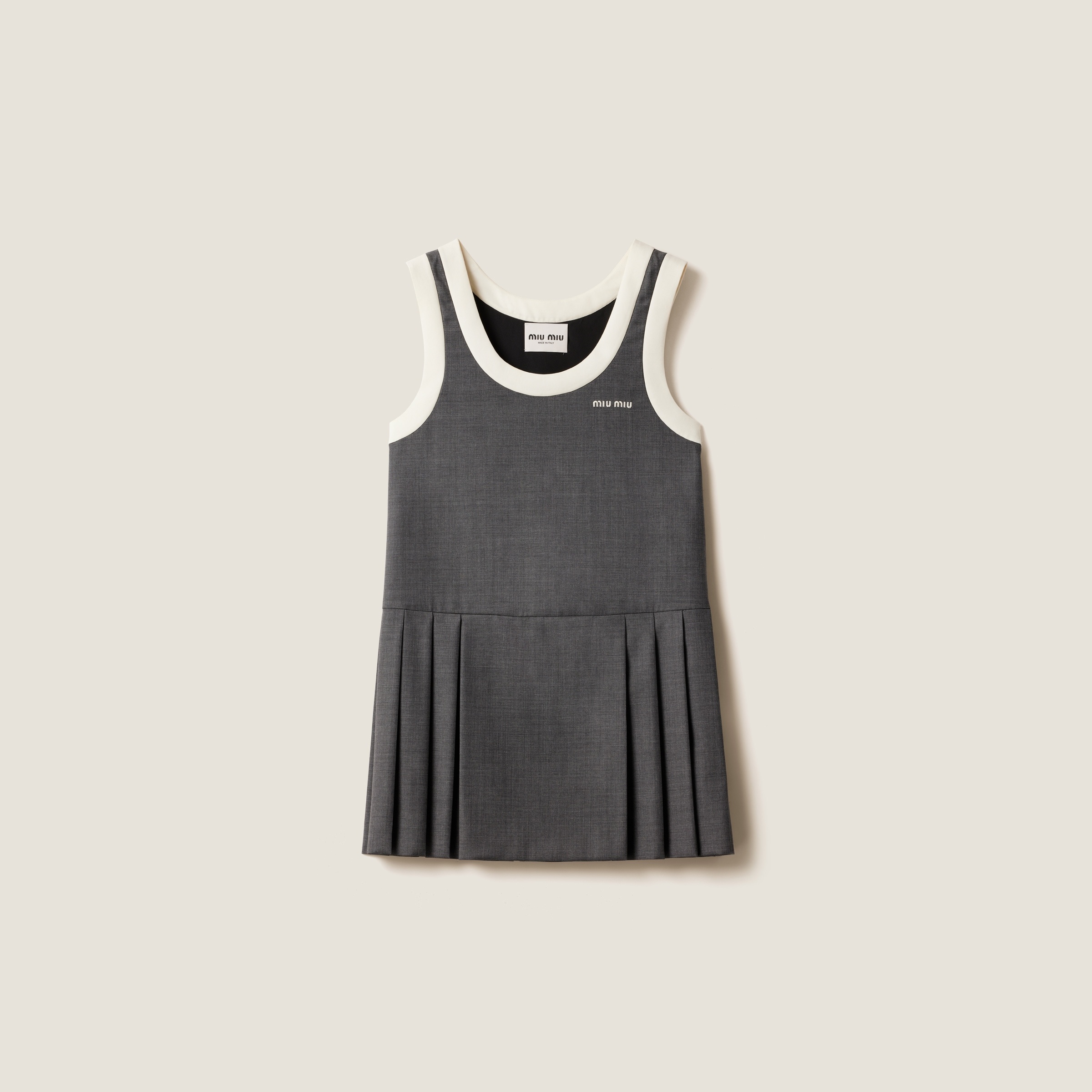 A relaxed, contemporary silhouette enhances this dress with references to the tennis world. Grisaille fabric, mainly used for formal and tailored suits, adds a touch of elegance to the versatile design of this dress. - Product code: MF5647_11RF_F0480_S_OOO - Sleeveless - Scoop neck - Embroidered logo - Imported - The model is 178 cm tall and wears a size 38 Height 85cm