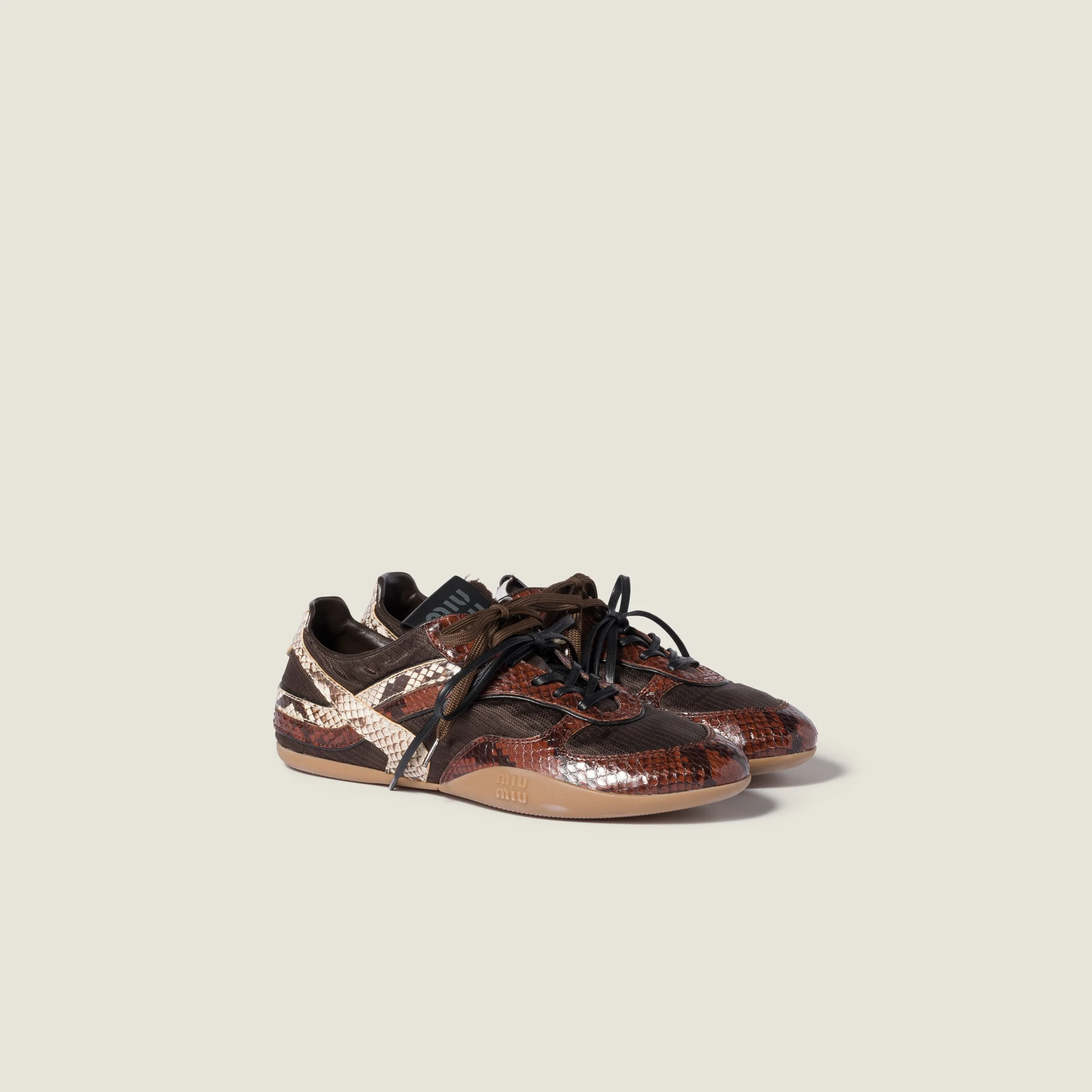 Gymnasium technical fabric and python-print Ayers leather sneakers