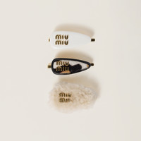 A spotted leopard effect, the soft touch of shearling, and glossy patent leather stand out in this hair clip set. The lettering logo completes the design with an iconic note. - Product code: 5IF184_2C3V_F0009 - Metal lettering logo - Imported Width 5.6cm Materials Main material: Lambskin