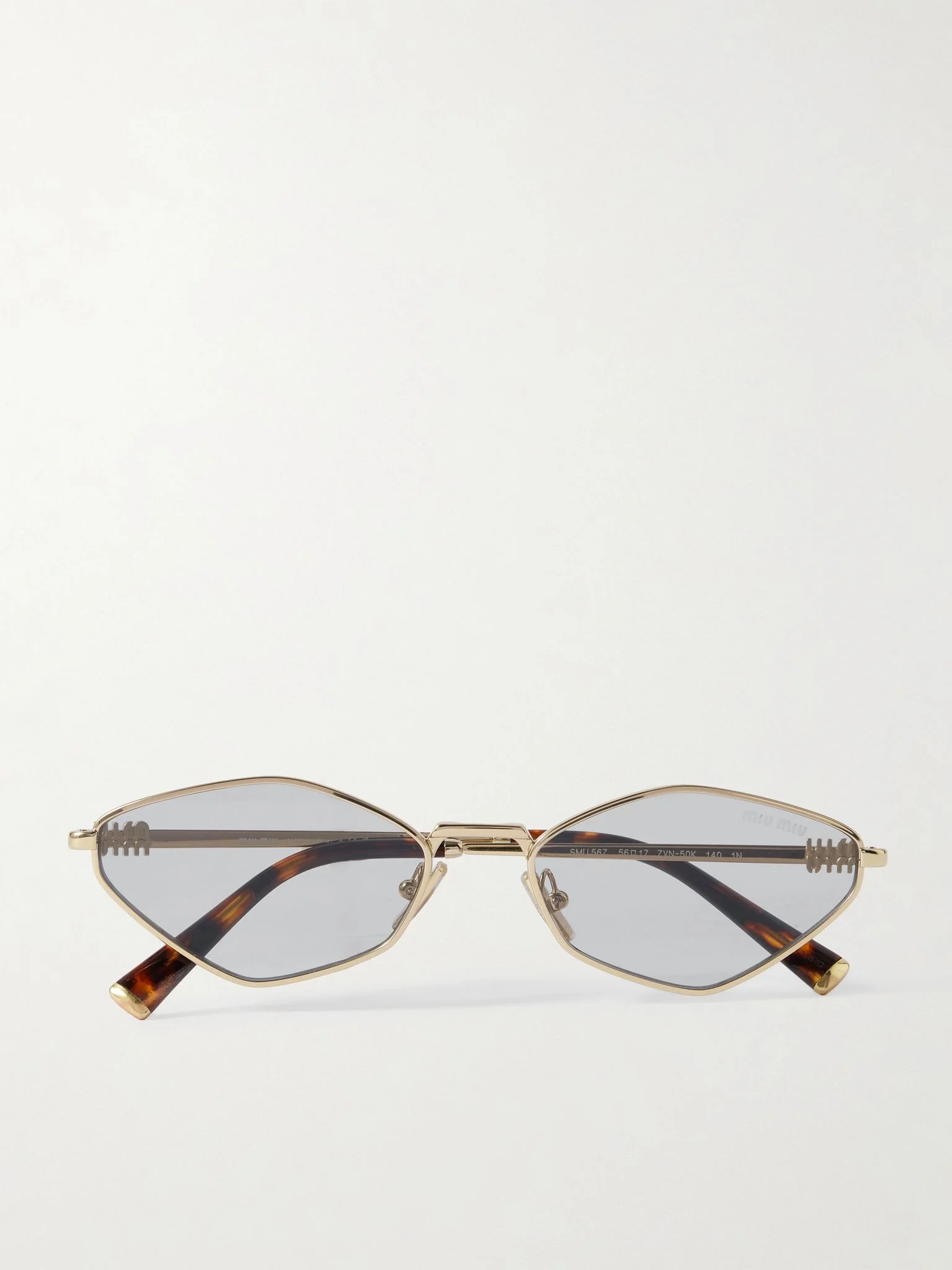 Miu Miu's hexagon-frame sunglasses will make any outfit feel instantly cooler. Made from gold-tone metal, they're carved with the label's logo at the temple and have comfortable tortoiseshell-effect acetate tips. Adjust the nose pads to perfect the fit. Details & Care - Gold-tone metal - Come with a case - 100% UV protection