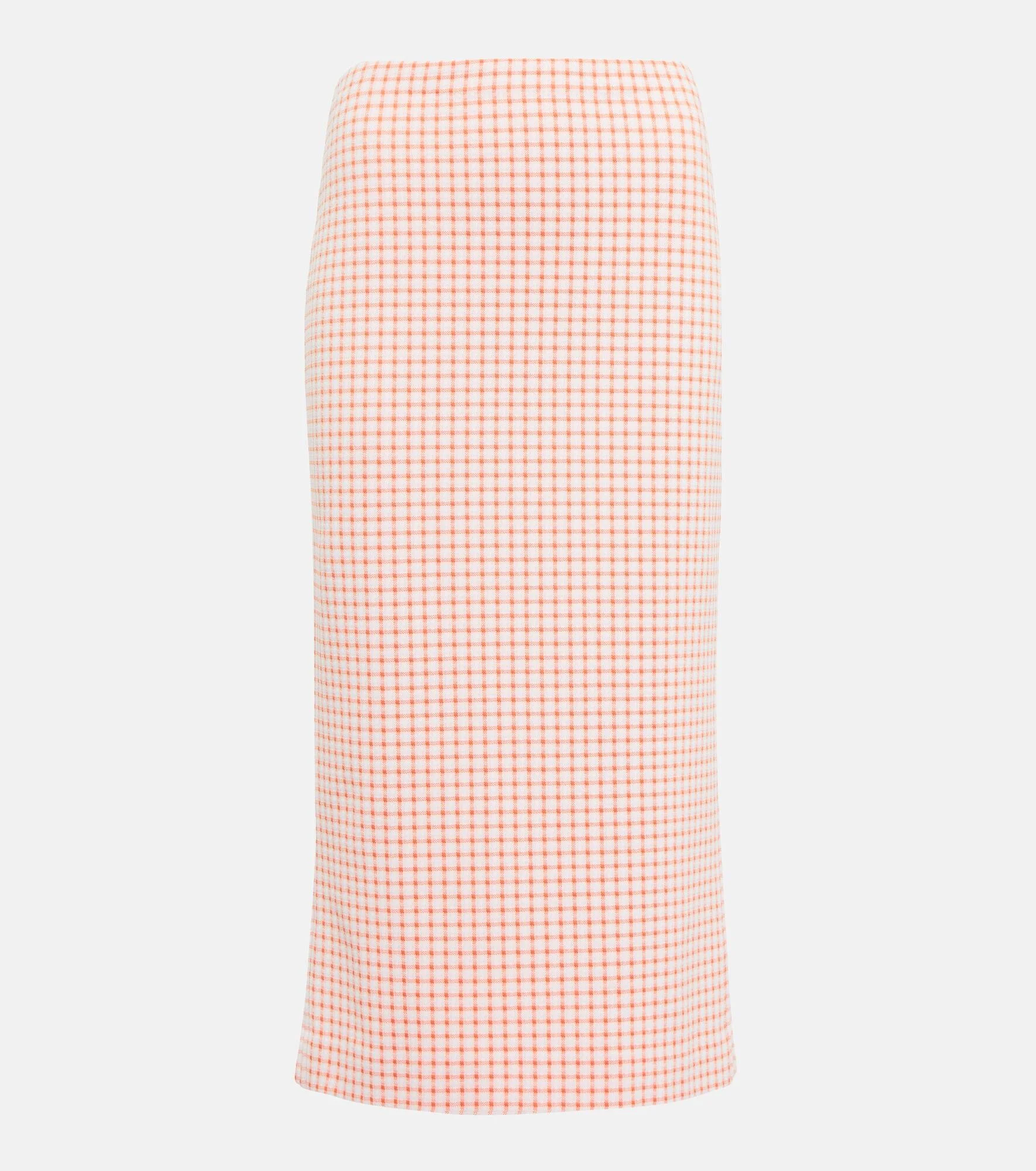 Simple, yet elegant, this Miu Miu high-rise pencil skirt is both form-fitting and eye-catching with its gingham pattern. Product Details - Made in Italy - Closure: zipper, hook fastening - Care instructions: dry clean - Designer color name: Arancio - Material: 96% polyamide, 4% elastane - Item number: P00639025 Size & Fit - True to size - High-waisted - The model seen in the picture is 178cm-5'10" and wearing a size IT 40