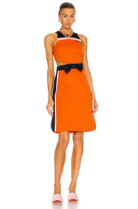 Details - Self: 98% poly, 2% elastan - Contrast Fabric: 54% polyamide, 45% cotton - Lining: 100% viscose - Made in Italy - Dry clean only - Fully lined - Cut-out side and back detail - Bow detail at waist - Hidden side zip closures - Intarsia logo label on front - Our Style No. MIUF-WD18 - Manufacturer Style No. MF4168_H20