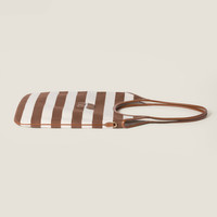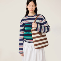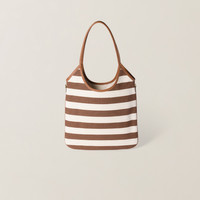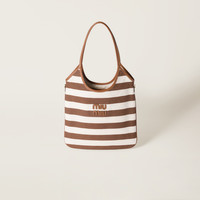Classic summer hues bring the stripe motif to life, enriching the essence of this IVY bag where the combination of leather and canvas enhances the shape and elegant contrasts of Miu Miu style. - Product code: 5BG231_2IBB_F0966_V_MLF - Leather handles - Gold-tone hardware - Linen blend interior with zipper pocket - Leather lettering logo on the front - Imported Height 40cm Width 35cm Materials Main material: Cotton Polyester