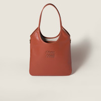 In this IVY leather bag, a classic style is enhanced with metal details and the Miu Miu lettering logo that gives the design an iconic and immediately recognizable note. - Product code: 5BG231_2CRW_F0033_V_MLN - Leather handles - Gold-tone hardware - Leather lettering logo on the front - Fabric lining with zipper pocket - Imported Height 40cm Width 35cm Materials Main material: Calfskin