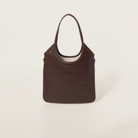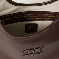 In this IVY leather bag, a classic style is enhanced with metal details and the Miu Miu lettering logo that gives the design an iconic and immediately recognizable note. - Product code: 5BG231_ACRW_F0NBL_V_MLN - Gold-tone hardware - Leather lettering logo on the front - Fabric lining with zipper pocket - Imported Height 40cm Width 35cm Materials Main material: Calfskin