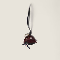 Distinctive elements of the Miu Miu wardrobe are transformed into precious accessories to be paired with bags, creating lively and personal combinations. This leather trick inspired by the iconic baseball cap adds a unique detail to the design of the bags. - Product code: 5TL569_2ID8_F0007 - With leather strap - With ring - Hot-stamped logo on the strap - Imported Materials Main material: Lambskin
