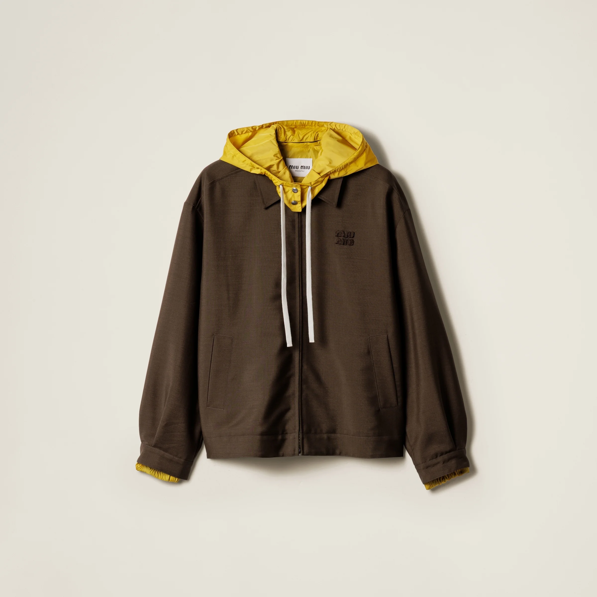 The allure of Miu Miu's classic garments meets sportiness in this kid mohair and technical ponge blouson jacket where a sartorial silhouette blends with contrasting details like the sleeves and detachable hood in technical fabric. - Product code: ML1268_17HV_F04NJ_S_OOO - Oversized fit - Lined garment - Long sleeves - Buttoned cuffs - Detachable hood - Drawstring hood - Zipper closure - Welt pockets - Embroidered logo - The article fits up to two sizes larger - Imported - The model is 178 cm tall and wears a size 38 Height 65cm Materials Main material: 60% Mohair 40% Virgin Wool