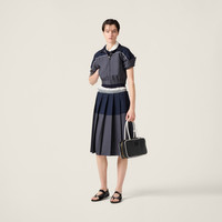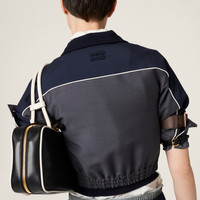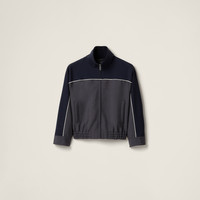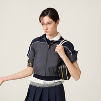 A sporty piping detail accentuates the contrast of classic shades in this kid mohair blouson jacket, revealing the versatile and athletic attitude that defines the essence of the Miu Miu uniform. - Product code: ML1200_163O_F0EVW_S_OOO - Lined garment - Stand-up collar - Long sleeves - Buttoned cuffs - Zipper closure - Welt pockets - No drawstring - Embroidered logo - Imported - The model is 179 cm tall and wears a size 38 Height 44cm Materials Main material: 60% Mohair 40% Virgin Wool