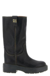 cod. 5U270EF0555ODF0002 Used-effect leather ankle boots with tubular leg, embossed logo on the side, and EVA sole with notched tread. Color: Black Size & Fit: EU WOMAN - Heels: 5.5 cm Composition: 100% calfskin leather (Bos Taurus) Made in: Italy