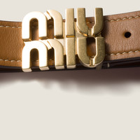 The Miu Miu logo stands out on the buckle of this leather belt thanks to its iconic and distinctive touch. - Product code: 5CC565_2AIX_F098L - Buckle with metal logo - Imported Height 2.5cm Materials Main material: Calfskin