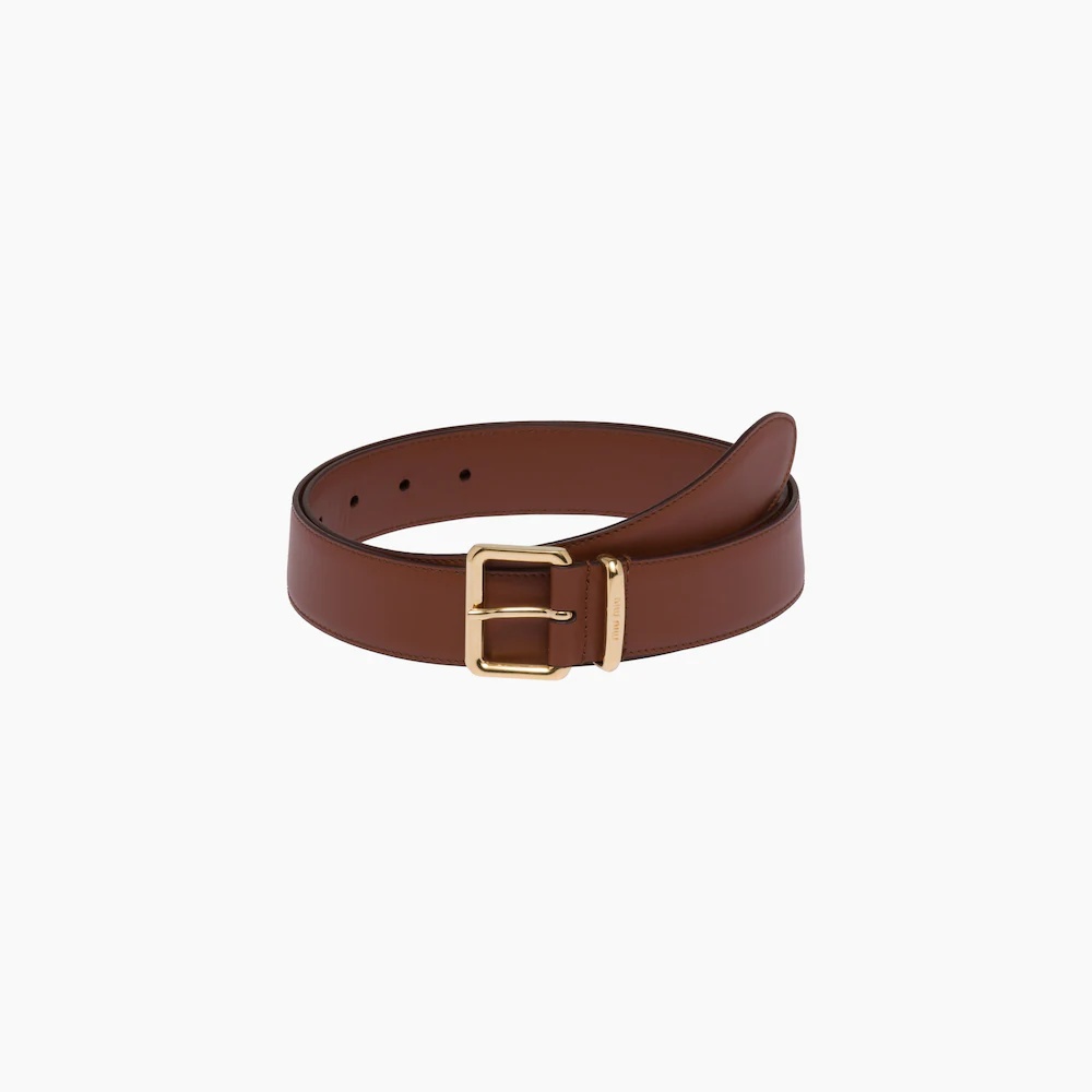 Cod. 5CC536_2AIX_F0005 Elegant and minimalist in design, this leather belt is characterized by the Miu Miu logo that embellishes the belt loop. - Metal buckle - Laser-engraved logo on belt loop Height 3.5 cm MATERIALS Leather