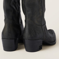 The vintage effect of the leather defines these Texan boots, which are inspired by classic men's wardrobe, combining them with preppy and feminine elements. - Product code: 5U349E_2KJ_F0002_F_045 - 25 cm high leg - 45 mm leather covered heel - Leather lining - Leather and rubber sole with metal lettering logo on the heel - Leather insoles - Logo embossed on tie rods - Imported Materials Main material: Calfskin