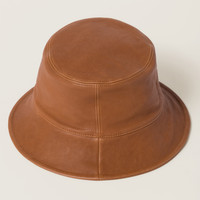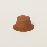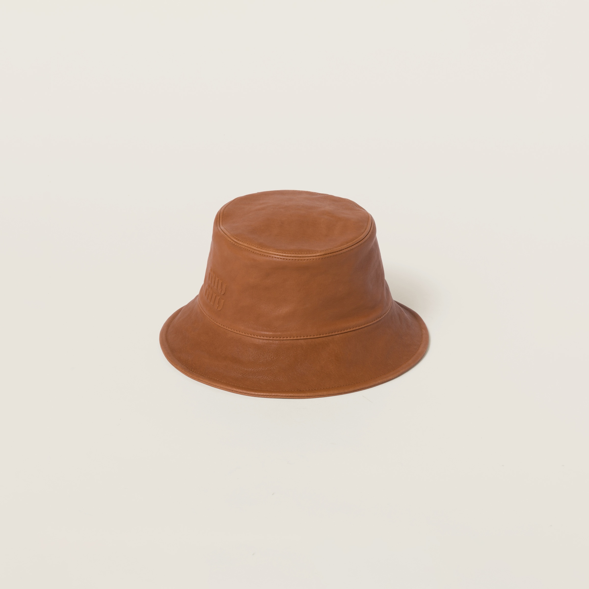 This version of the classic bucket hat comes in leather. The iconic embossed Miu Miu logo enriches the accessory with an iconic note. - Product code: 5HC196_2BBL_F098L - Embossed logo - Cotton gabardine lining - Imported