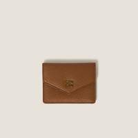 The simple charm of this card holder combines the uniqueness of soft leather and the gold-tone metal logo that makes the accessory a symbol of Miu Miu style. - Product code: 5MF031_ADT7_F0046 - One card slot - One internal pocket - External pocket with card slot - Snap closure - Moire lining - Metal lettering logo - Imported Height 8.5cm Width 10.5cm Materials Main material: Calfskin