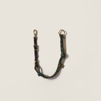 This trick combines high-quality materials and Miu Miu's contemporary style. The two-tone cord and metal logo detail give this accessory a versatile and iconic character. - Product code: 5TL510_2IFO_F0NTG - With snap hook and ring - Perforated logo on detail - Imported Width 57cm Materials Main material: Lambskin