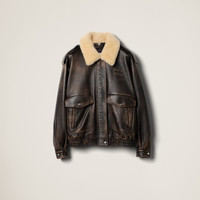 A timeless style characterizes this nappa leather bomber jacket. The removable shearling collar, vintage effect and elasticized hem define the design while the lettering logo completes the garment with an iconic note. - Product code: MPV901_1134_F0201_S_OOO - Lined - Padding with wadding - Regular fit - Front closure with zipper and snaps - Detachable shearling collar - Straight sleeves with cuffs - Flapped patch pockets - Elasticized hem - Embossed lettering logo - Vintage treatment - Imported - The model is 177 cm tall and wears a size 38