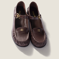 The preppy attitude of the loafer meets the iconic Mary Jane shoe in this buffalo leather style with an ultralight, ruched design defined by the refined gold-tone details of the logo and buckle. - Product code: 5D563E_007_F0003_F_015 - Upper with strap and buckle - Apron with embossed logo - Leather lining - Leather and monoblock rubber sole - Leather insole - Heel height: 15 mm - Imported Materials Main material: Buffalo