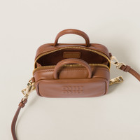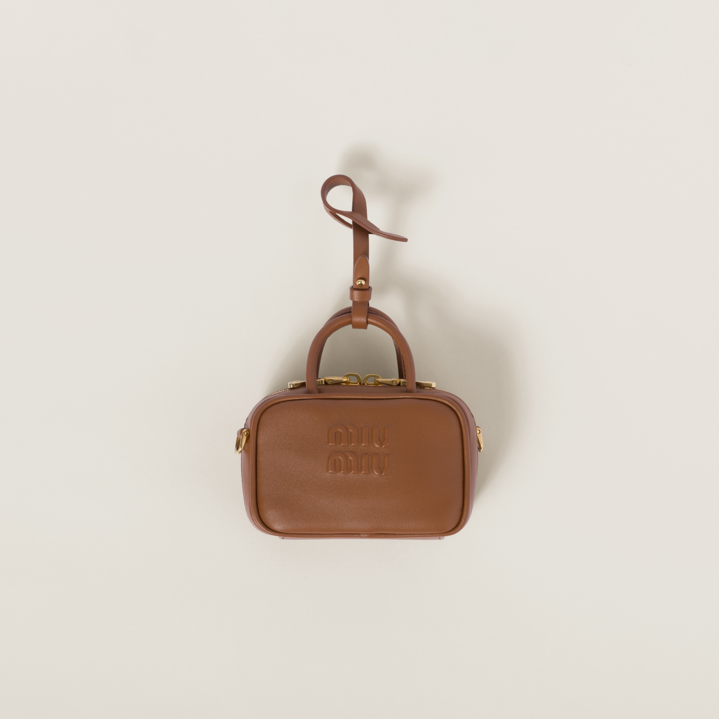 This leather micro bag is characterized by its fine material and playful yet refined style. Used alone with its shoulder strap or attached to other handbag, the bag is embellished with the embossed lettering logo that completes the design with an iconic note. - Product code: 5NR020_2F8W_F0046 - Zipper closure - Embossed lettering logo - Detachable-adjustable leather shoulder strap - Cotton satin lining - Width: 10,5cm - Length: 4cm - Imported