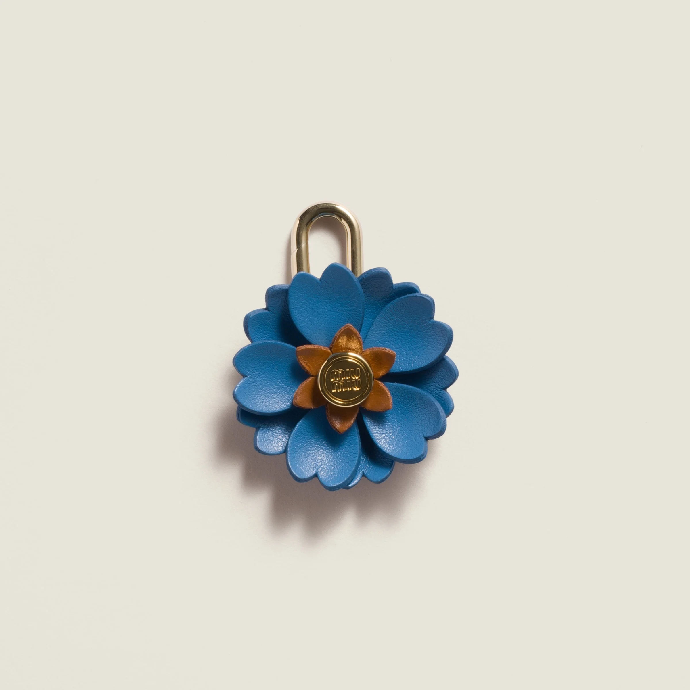 Miu Miu's elegant, playful character comes to life in this flower-inspired micro trick that enriches the silhouette of sneakers and bags, creating unique style combinations. - Product code: 5ID016_2FLQ_F0WK7 - With metal snap-hook - Engraved logo on detail - Imported Height 3cm Width 3cm Materials Main material: Calfskin